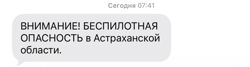 Сегодня ранним утром на территории Астраханской области ввели режим беспилотной опасности. Предупреждения от МЧС приходили местным жителям в промежутке с 07:00 до 08:00.