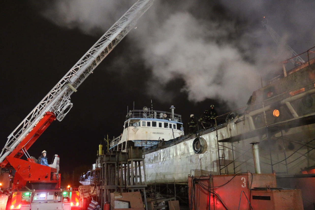 На берегу у судоремонтного завода «Звёздочка» загорелось судно. Общая площадь пожара составила 80 кв. метров. По информации спасателей, огонь возник из-за нарушения правил пожарной безопасности при проведении огневых работ.