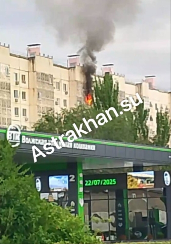 Астраханцы прислали в редакцию кадры пожара, на которых видно, как из квартиры, которая находится на восьмом этаже жилого дома, расположенного в микрорайоне Бабаевского, вырываются языки пламени.