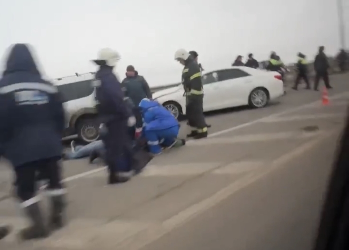 Сегодня на Аксарайском шоссе произошла жесткая авария.