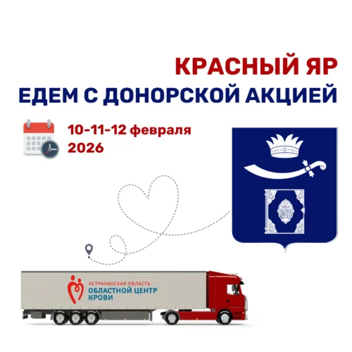 Как сообщили в минздраве области, 10, 11 и 12 февраля в селе Красный Яр пройдет выездная донорская акция, организованная Астраханским областным центром крови.