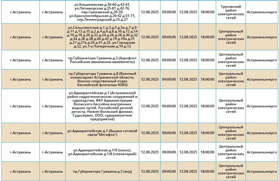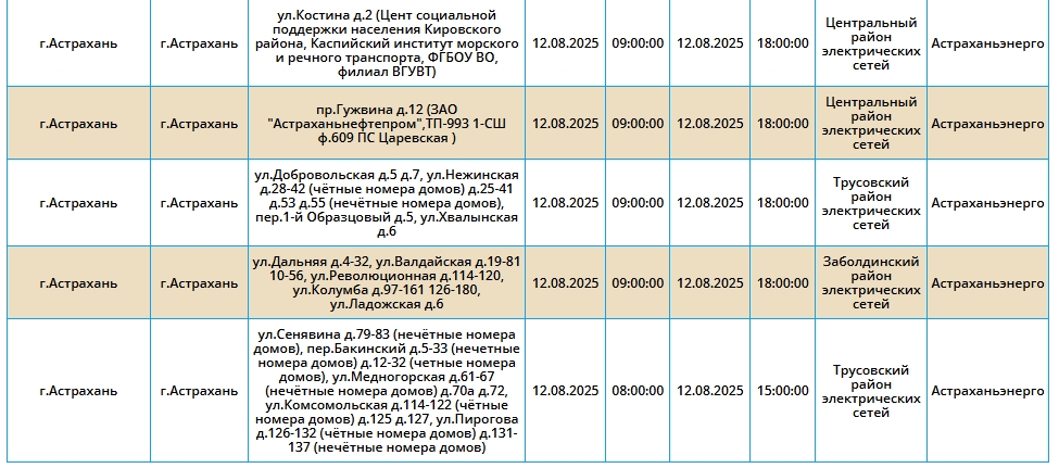 Плановые отключения электроэнергии продолжаются. Как сообщает пресс-служба «Россети Юг», завтра, 12 августа, без света несколько часов проведут тысячи астраханцев в разных районах города и области.