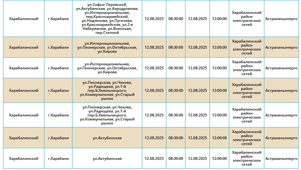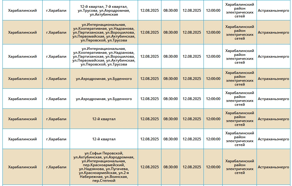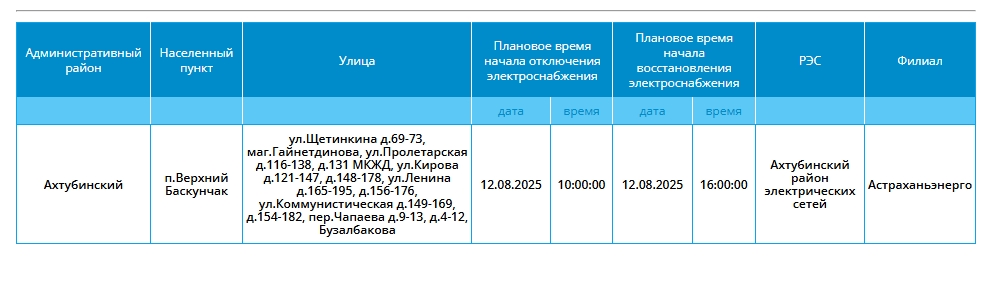 Таким образом, света не будет у жителей областного центра, Ахтубинского, Приволжского, а также Харабалинского районов. В последнем, кстати, предстоит крупное отключение сразу нескольких населенных пунктов. Подробнее в галерее ниже: