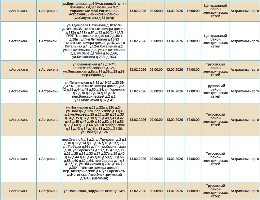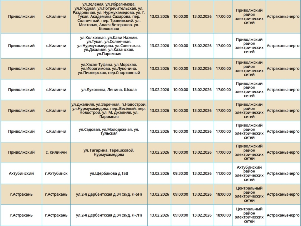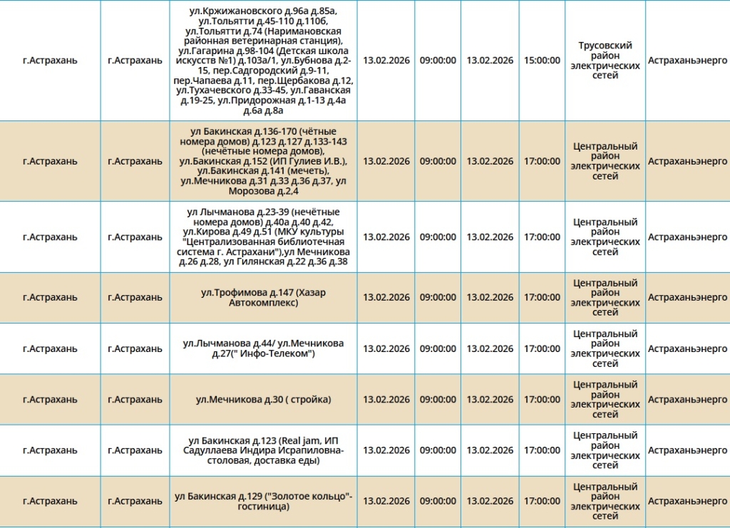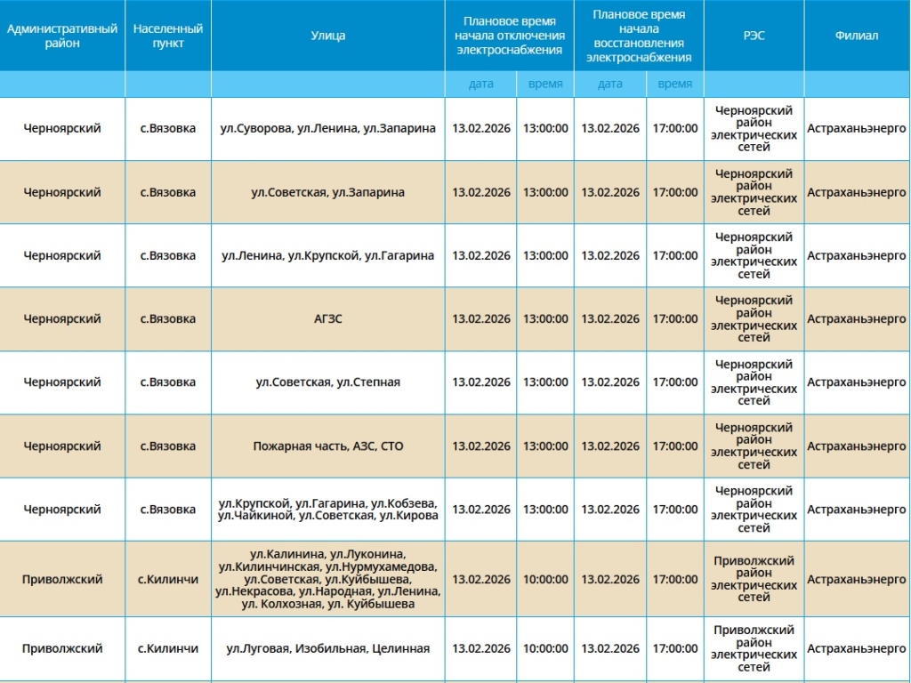 В эту пятницу 13‑е без электроэнергии останутся ряд абонентов, проживающих в городе Астрахань, а также в Приволжском и Черноярском районах.