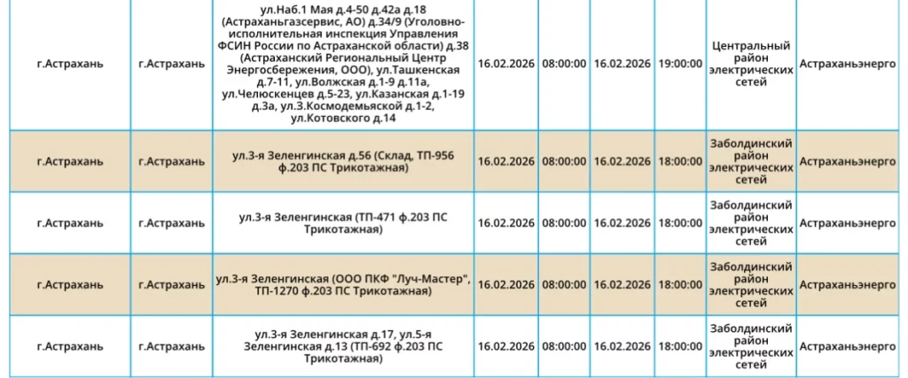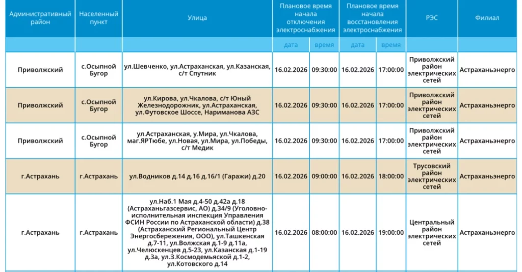 16 февраля временно электричество отключат у некоторых абонентов областного центра и Приволжского района. Где точно не будет несколько часов света, смотрите на фото ниже:
