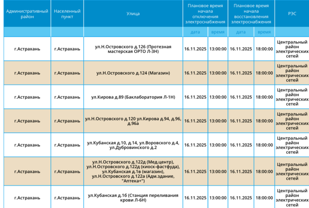 Света не будет в Приволжском районе области, а также в городе Астрахань. Без электричества останутся жилые дома, административные здания и светофоры. Подробности в галерее ниже: