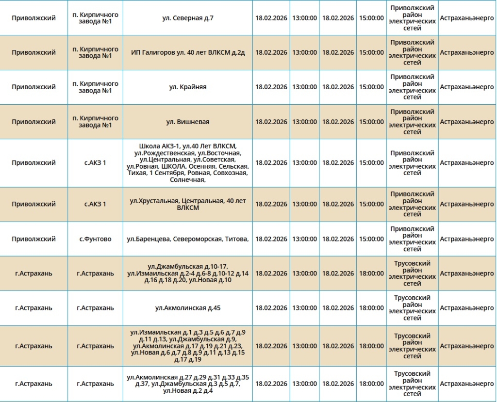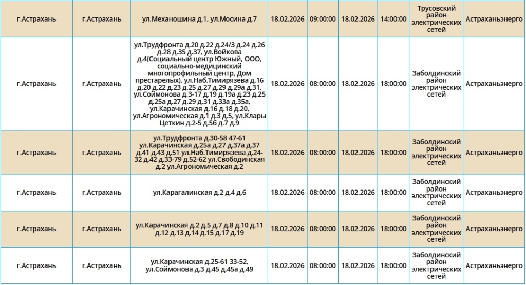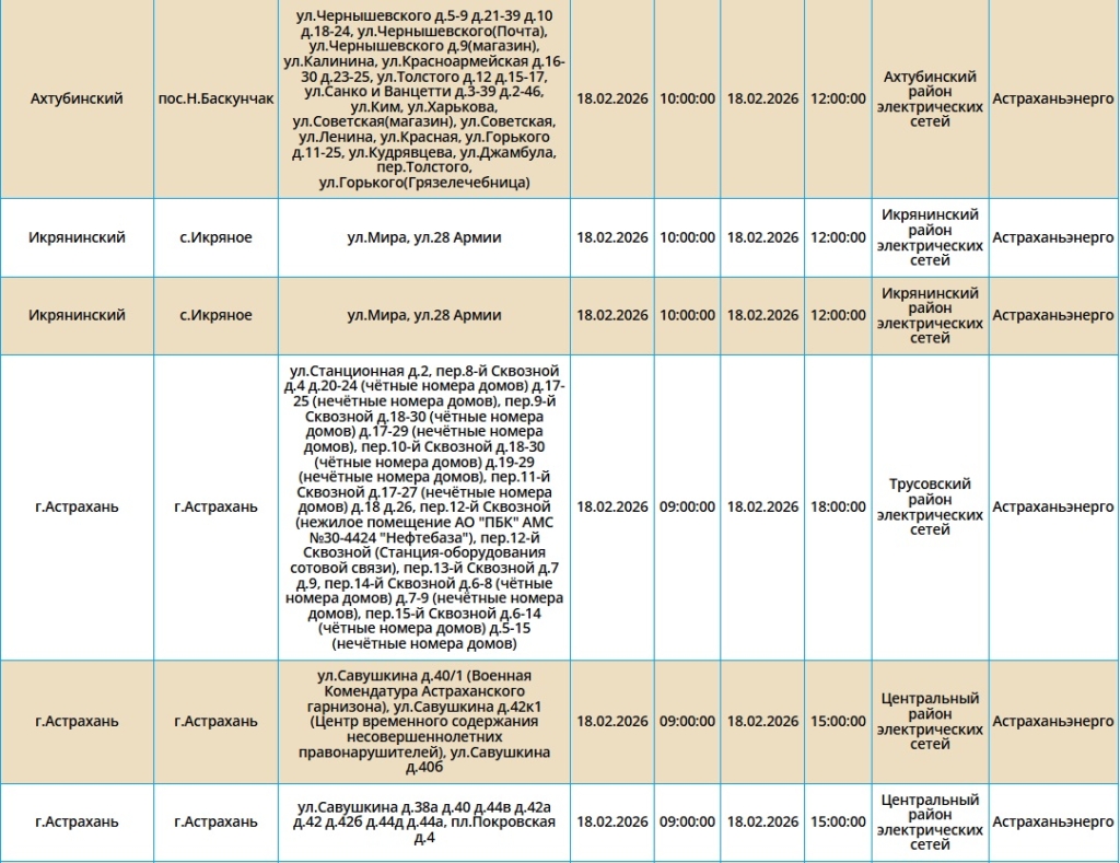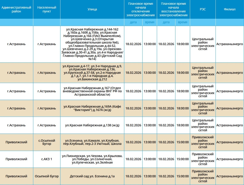Отключения затронут не только Астрахань, но и несколько районов области – Приволжский, Ахтубинский и Икрянинский. Самые ранние отключения начнутся уже в 08:00. Полный список адресов, попадающих под ограничения, можно посмотреть в галерее ниже: