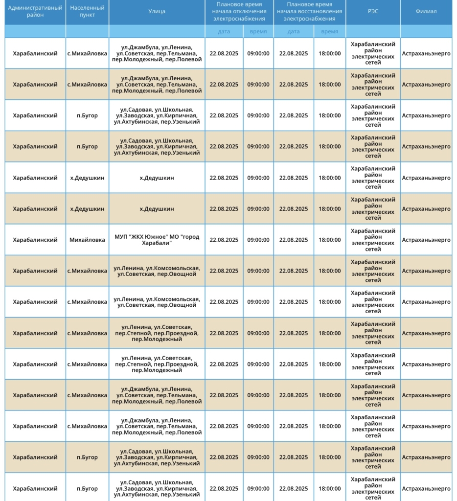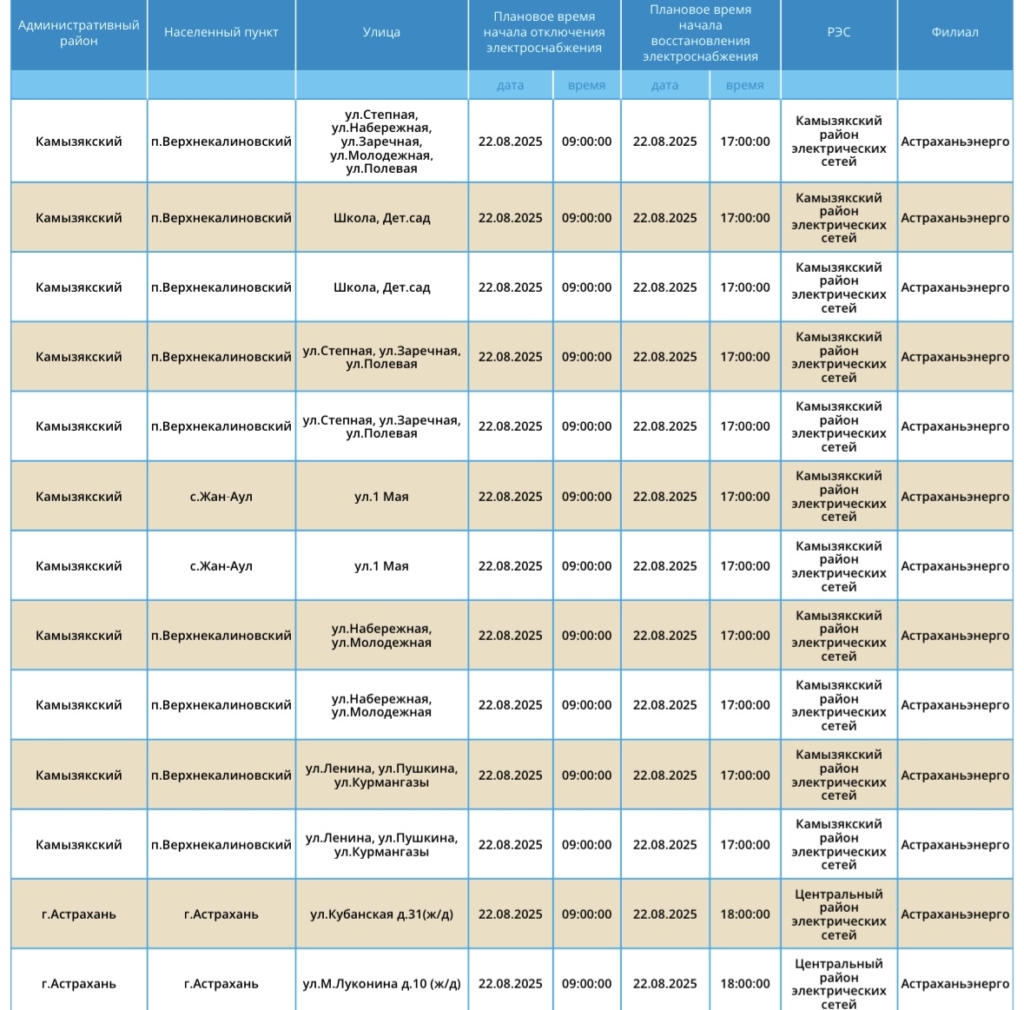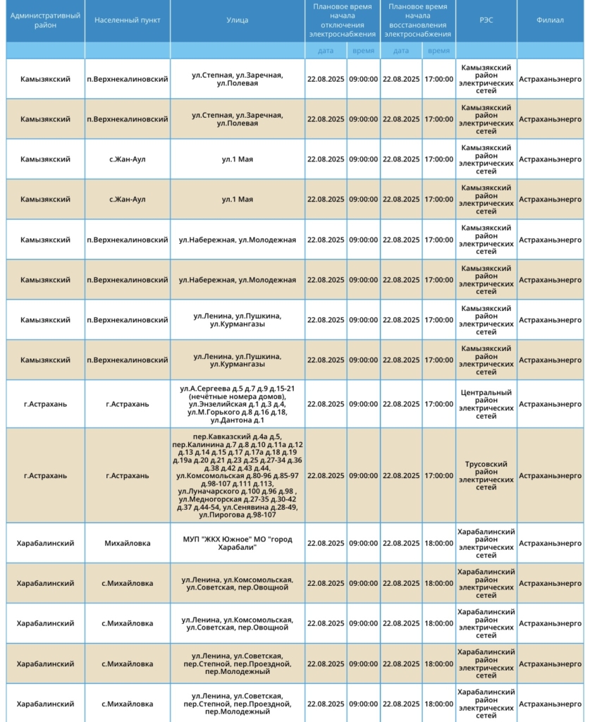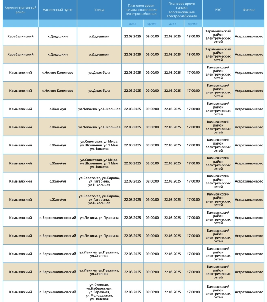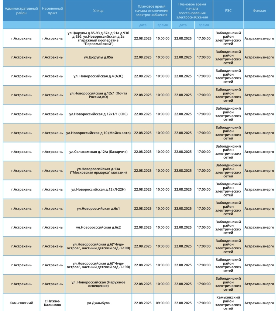 Завтра, 22 августа, на территории Астраханской области вновь пройдут плановые отключения электричества. Об этом сообщили в пресс-службе ПАО «Россети Юг».