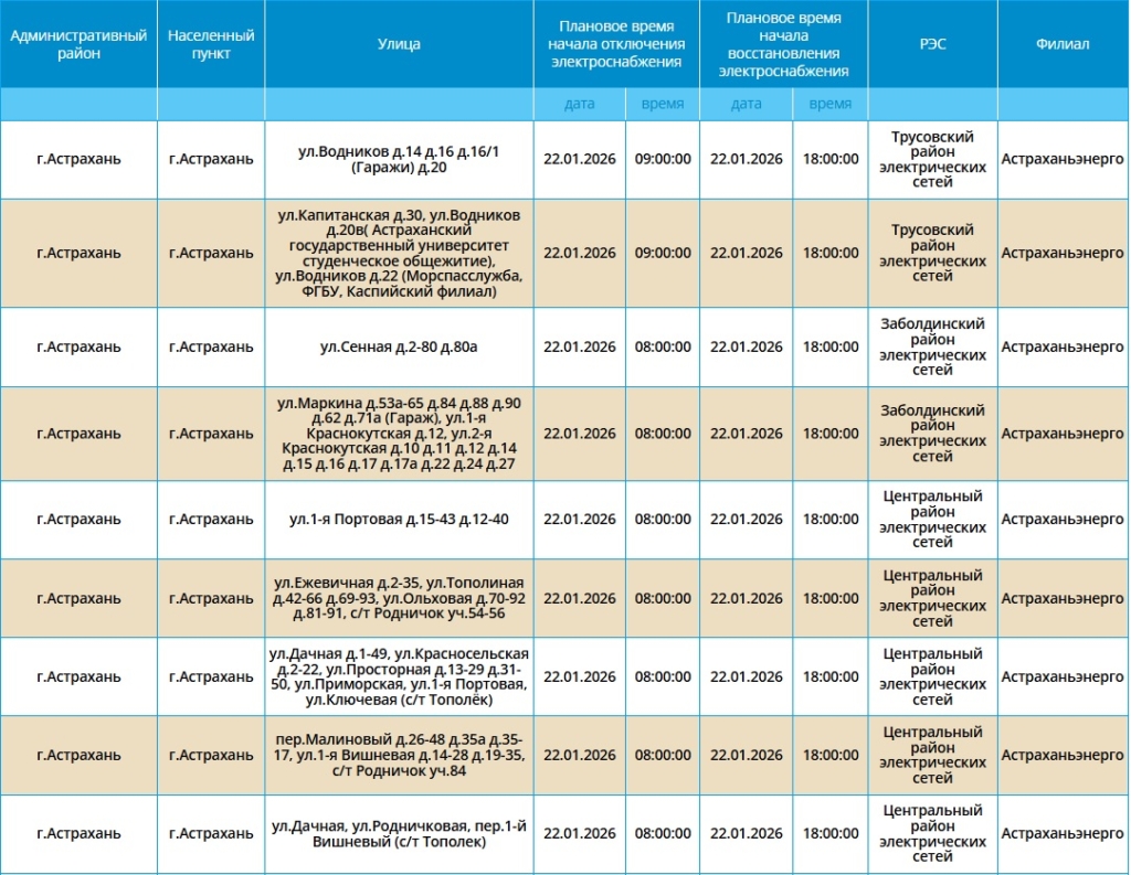 Без света останутся десятки жилых домов и административные здания. Свет отключат уже в 08:00 и его не будет в домах и квартирах до 18:00. Астраханцам советуют заранее зарядить все необходимые гаджеты. А с полным списком адресов можно ознакомиться в галерее ниже: