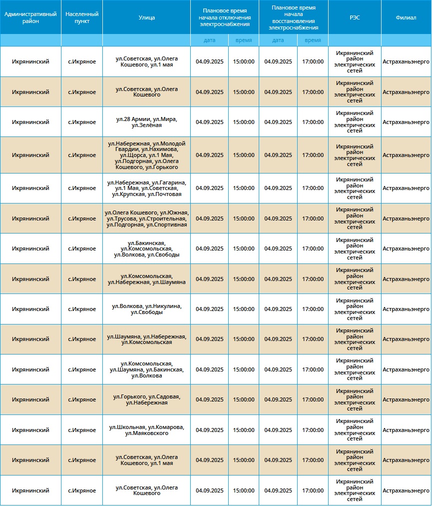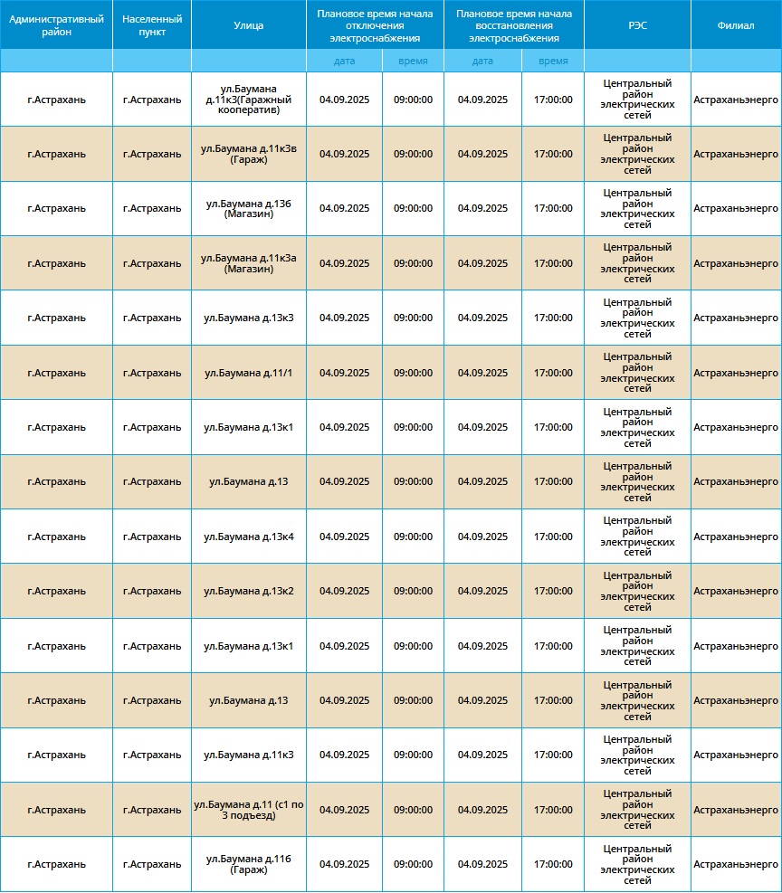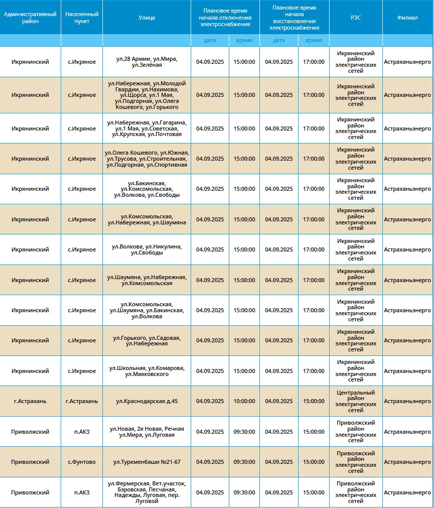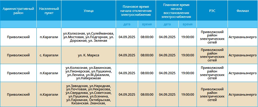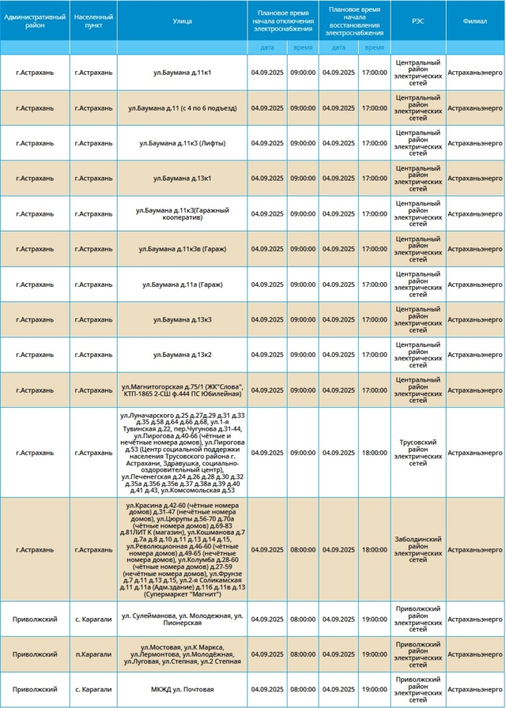 Так, света не будет как в самом городе Астрахань, так и в Икрянинском и Приволжском районах. Без электричества останутся сотни жилых домов. Подробнее со списком отключений можно ознакомиться в галерее ниже: