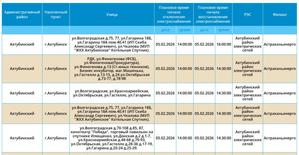 В этот четверг, 5 февраля, в Астраханской области пройдут очередные отключения электроэнергии. Об этом сообщили в пресс-службе ПАО «Россети Юг».