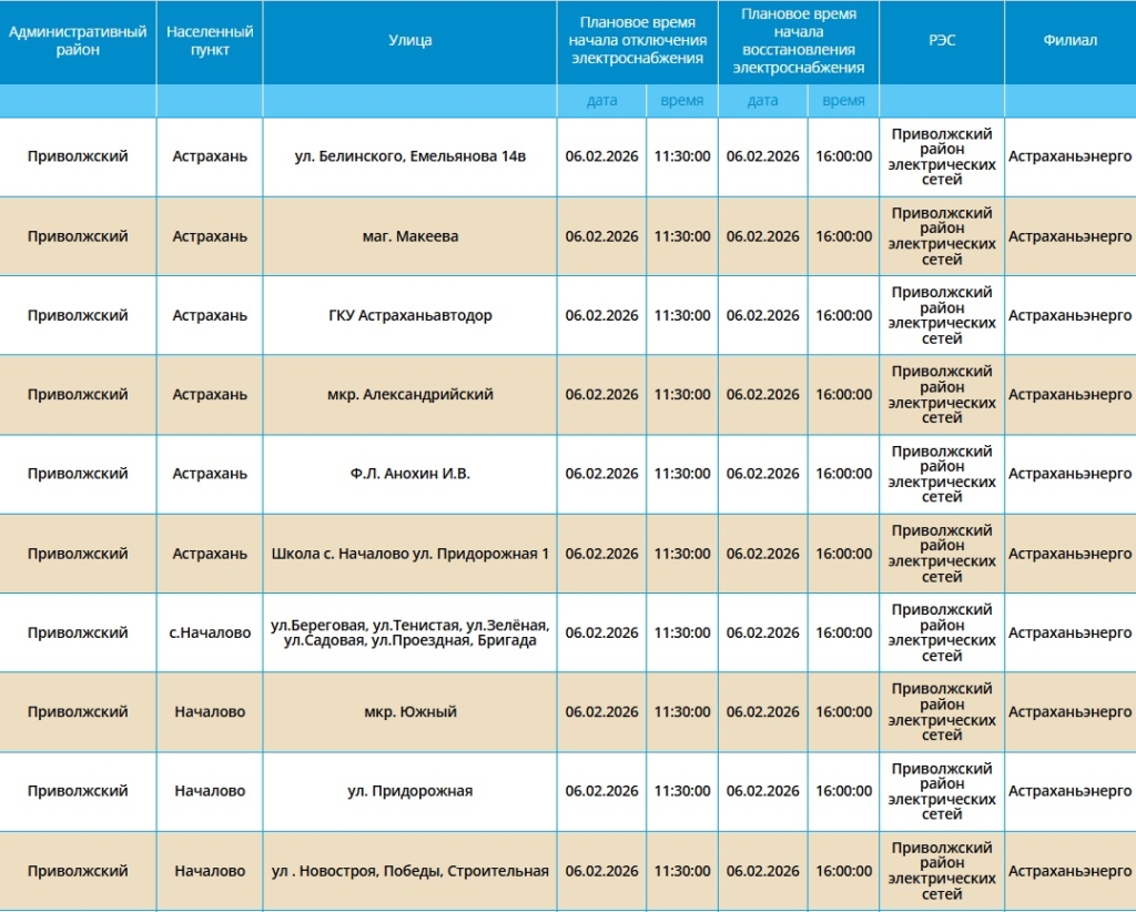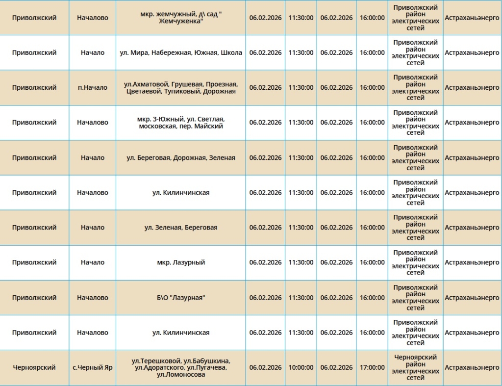 Так, завтра без света останутся несколько улиц в городе Астрахань, а также в Приволжском и Черноярском районах. Самые ранние отключения начнутся в 09:00. Полный список адресов смотрите в галерее ниже: