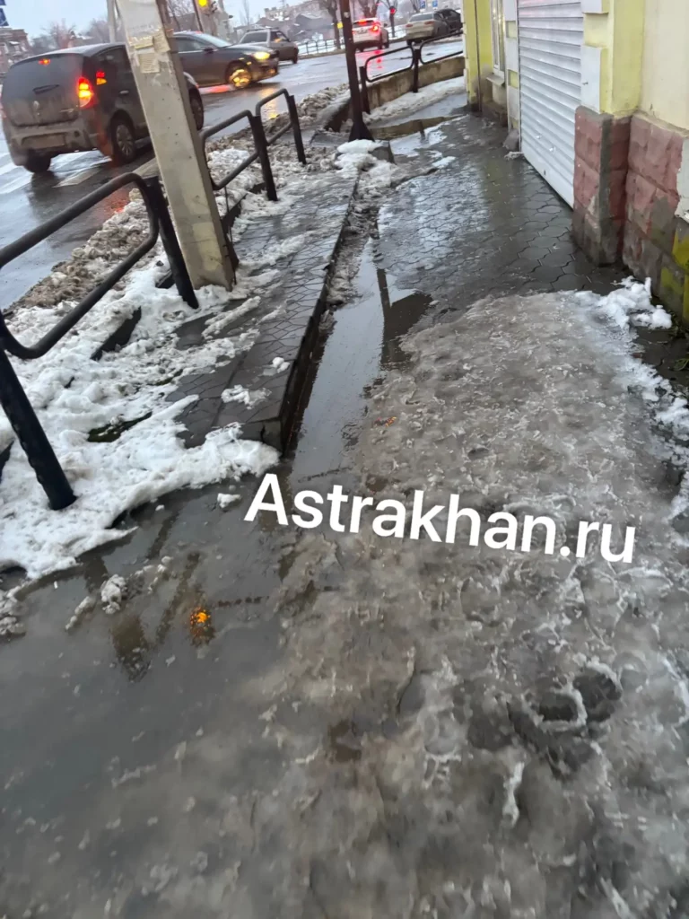 «Смысла в том, что снег сгребли, мало. Надо его убрать, ведь все это тает, вода никуда не уходит. А если завтра мороз? Лужи замерзнут, и пройти по территории вообще будет невозможно. Особенно пенсионерам, как быть», – говорит астраханка Ольга М.