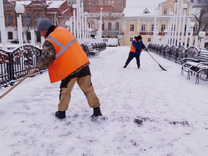 Также подобная работа идет на территории различных общественных пространств. Машины МБУ «Чистый город» работают круглосуточно. Коммунальщики уделяют особое внимание спускам и подъемам мостов, выполняя работы вручную и с помощью техники на общественных пространствах.