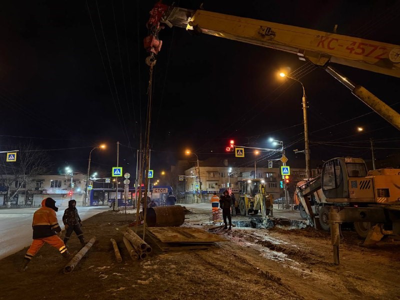 Всю ночь рабочие МУП «Астрводоканал» трудились на месте прорыва трубы водоснабжения на улице Н. Островского, 111.