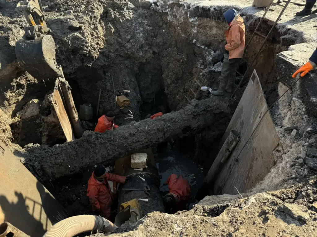 Специалисты установили муфту Ду-980 миллиметров в месте расхождения шва поврежденного трубопровода, сварные конструкции на все его аварийные участки. Работы проводились более суток в условиях минусовой температуры. Также ситуация осложнена тем, что было обеспечено непрерывное водоснабжение. Для обеспечения доступа к месту повреждения трубы требовалась регулярная откачка воды.