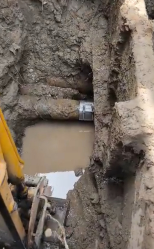 Производится демонтаж теплолотка для доступа к месту аварийной ситуации. Коммунальщики установят хомут для оперативного восстановления водоснабжения. Параллельно ведутся работы по монтажу новой линии от ПНС с выносом из-под смежных коммуникаций. Согласно закону, организация, осуществляющая подачу холодного водоснабжения, вправе временно прекратить или ограничить подачу ресурса в случае возникновения аварии. Тем более, что водоснабжение обеспечивалось посредством подвоза воды.