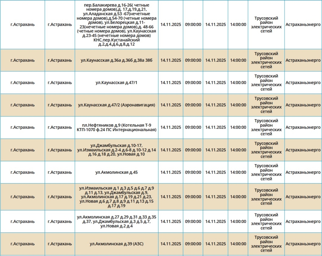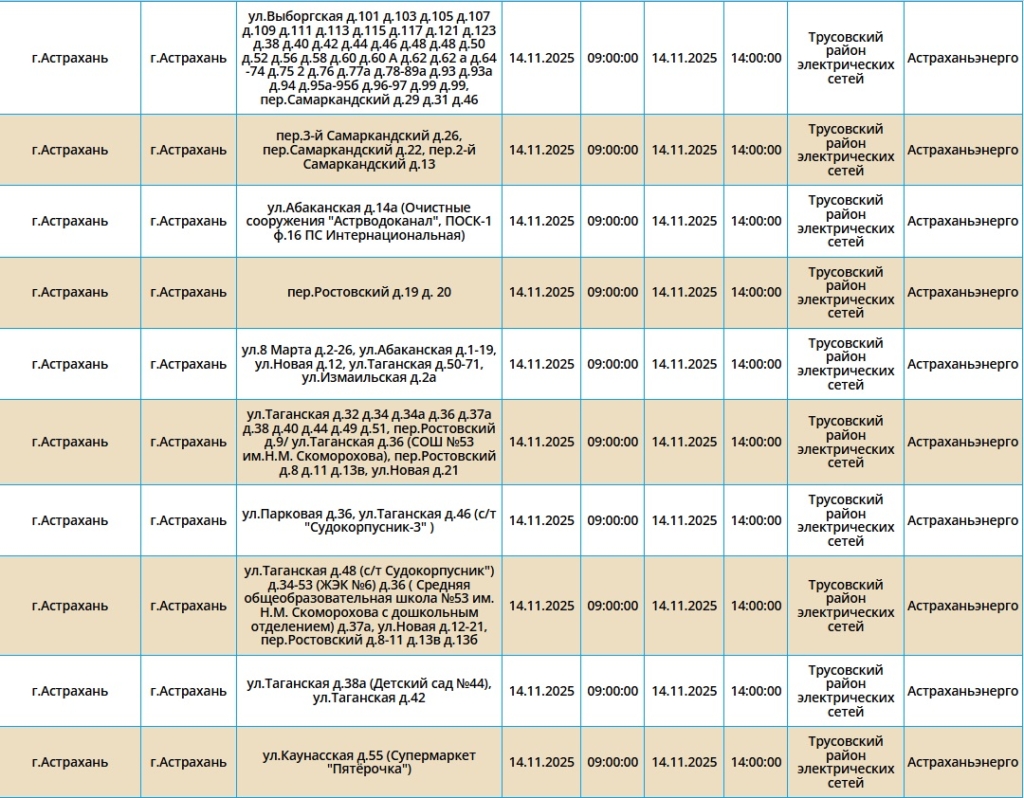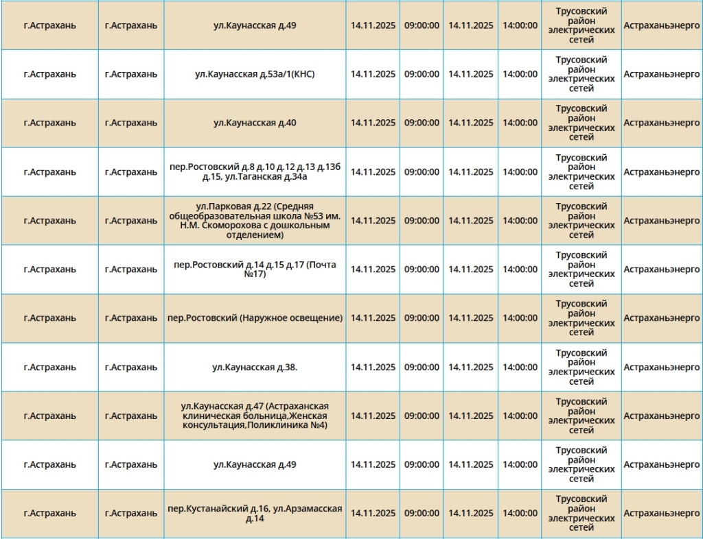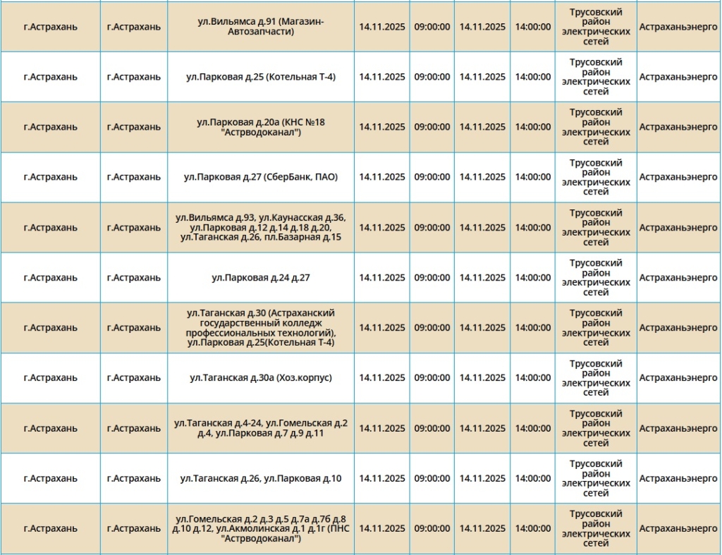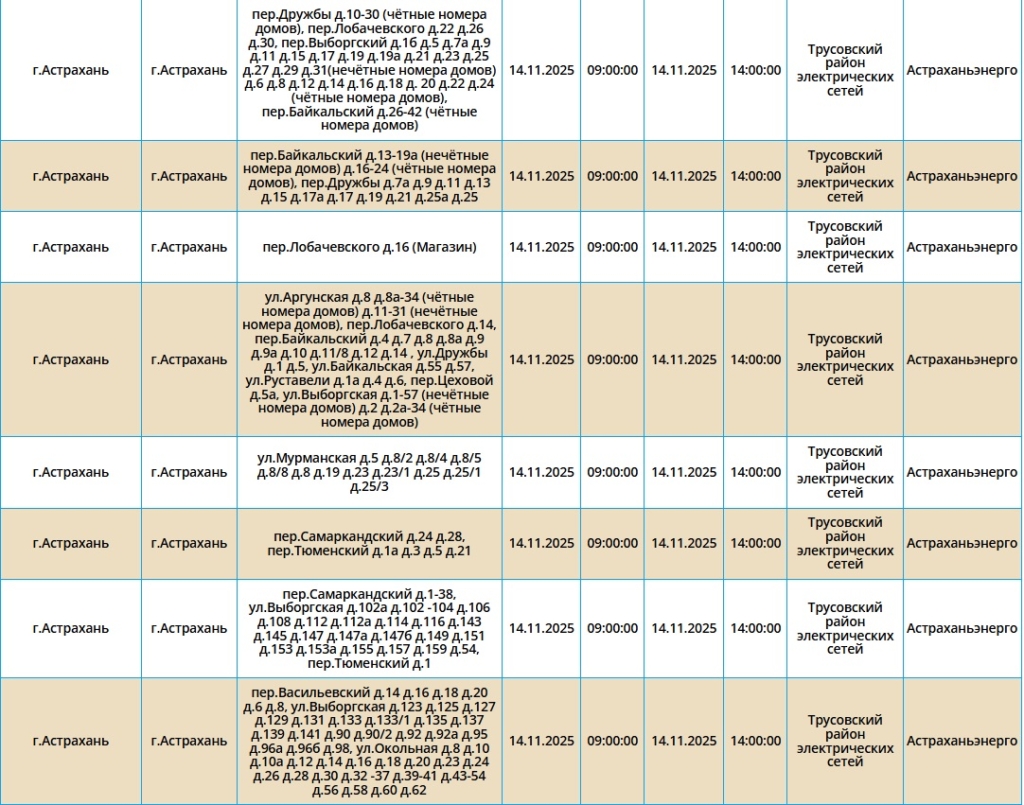 Завтра, 14 ноября, в Астраханской области пройдут очередные массовые отключения электроэнергии. Это необходимо для проведения плановых ремонтных работ на электросетях, сообщают сотрудники ПАО «Россети Юг».