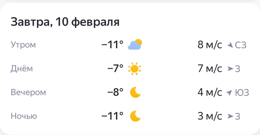 10 февраля в Астрахани температура воздуха днем составит – 7 градусов, а ночью станет еще холоднее – до ‑11. Ветер западный, 7 м/с. Без осадков, солнечно.