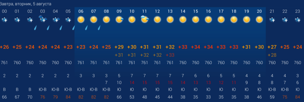 Днем температура воздуха в городе будет в пределах +29…+34 градусов, а ночью понизится до +24 градусов.