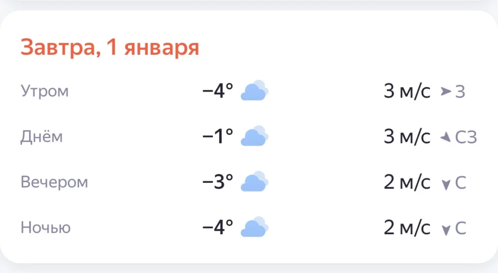 Завтра днем температура воздуха составит один градус тепла. К вечеру похолодает до минус трех. Ветер ожидается северный, 3 м/с.