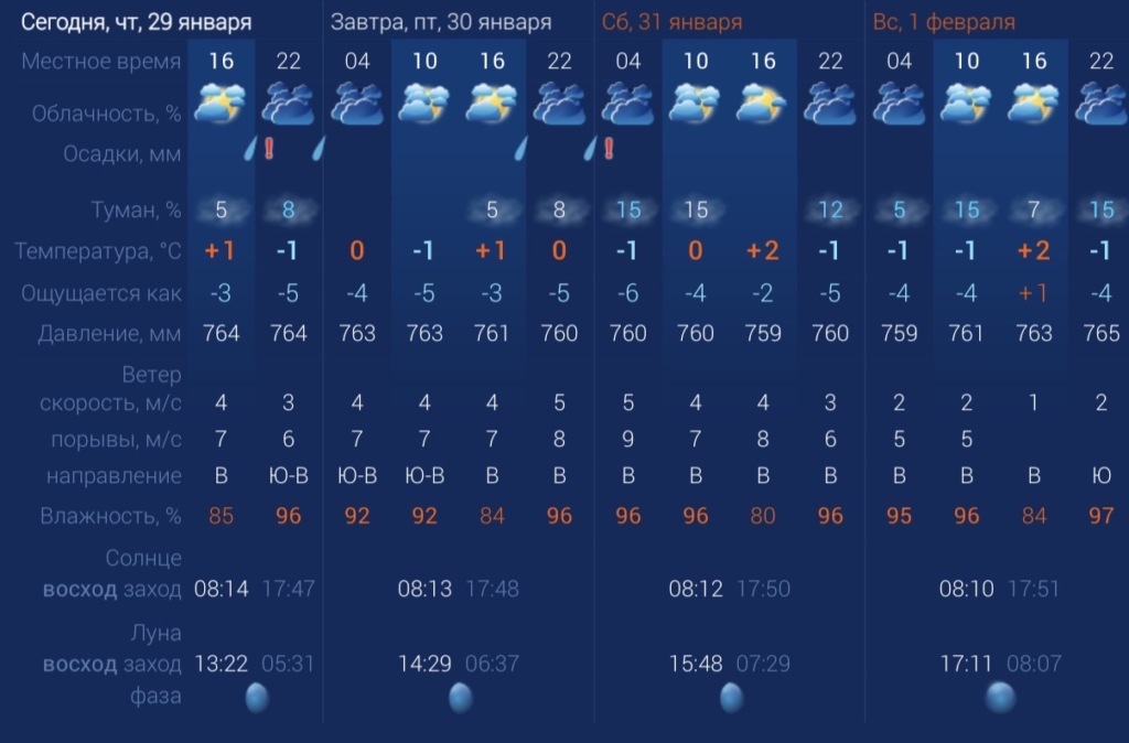 По данным Астраханского ЦГМС, на территории региона с 29 января по 4 февраля ожидается непогода. Будьте готовы к осадкам, проявляйте осторожность на дорогах и одевайтесь теплее.