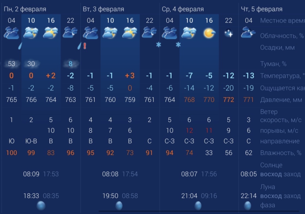 В отдельные дни – снег с дождем, туман, гололед на дорогах. Ветер переменных направлений 2 – 12 метров в секунду. Ночью температура воздуха упадет до ‑22, днем до ‑17 градусов. В областном центре ситуация аналогичная.
