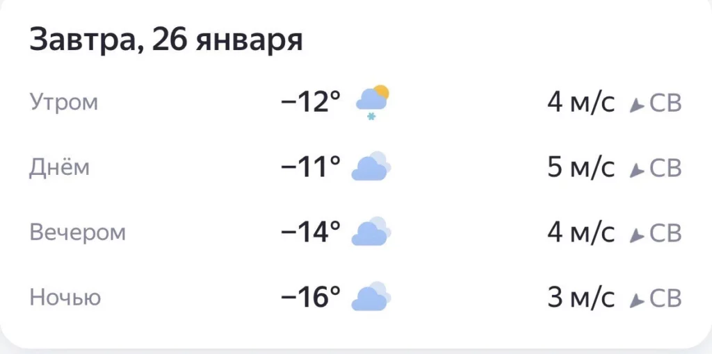 Завтра в Астрахани, по прогнозам синоптиков, температура воздуха составит ‑11 градусов. К ночи похолодает – столбик термометра опустится до ‑16. Ситуацию усугубит северо-восточный ветер 5 м/с.