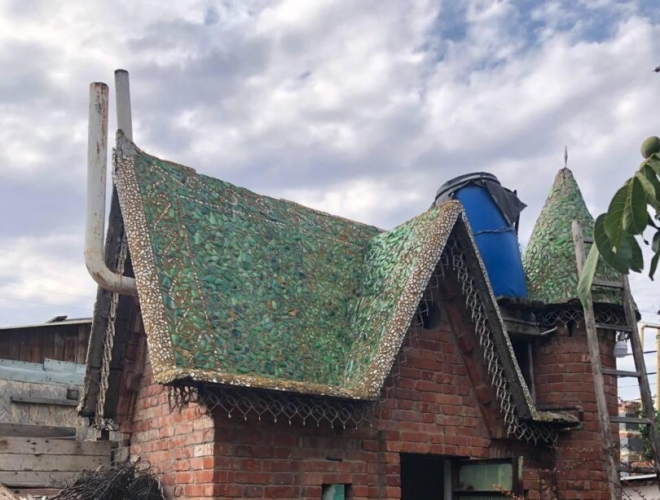 В одном из уголков Астрахани скрывается необычный дом, чья крыша украшена бутылками и осколками тарелок. Местные жители рассказали, что строение возвел еще в 1980‑х годах глава семьи, вдохновившись архитектурой Латвии.