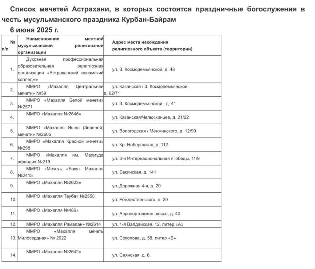 Мэр Астрахани Игорь Редькин провел межведомственное совещание по вопросу проведения мусульманского праздника Курбан-Байрам. В 2025 году он отмечается 6 июня.