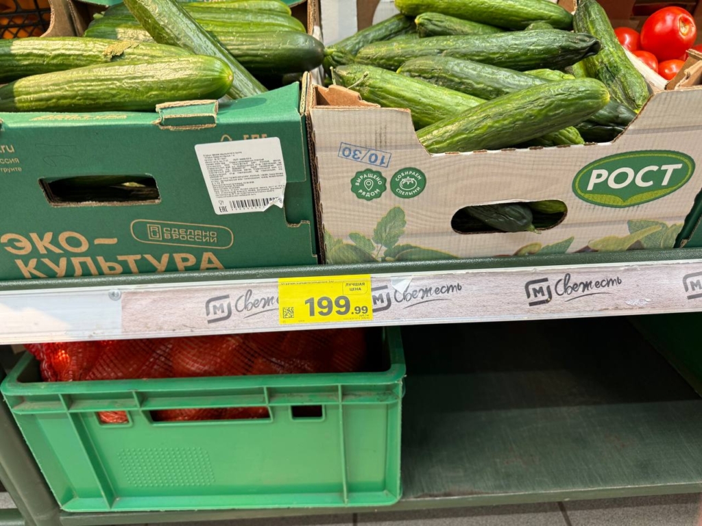Мы также решили проверить ситуацию на месте и изучили ценники в астраханских магазинах. На сегодняшний день килограмм огурцов в зависимости от торговой сети и страны происхождения стоит в среднем от 260 до 340 рублей: