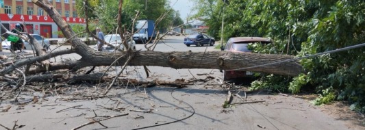 Оно чудом не раздавило стоящую рядом машину и перекрыло проезд по улице.