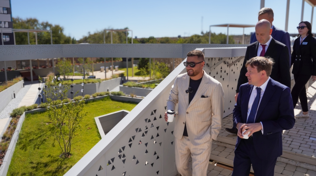 Наш каспийский феномен вновь привлёк интерес столичных гостей – делегация «Национальное объединение строителей» (НОСТРОЙ) во главе с президентом ассоциации Глушковым Антоном Николаевичем, прибывшая в Астрахань с рабочей встречей, посетила ЖК «Атмосфера» с ознакомительной экскурсией. Провёл её для столичных коллег основатель компании PROGRESS Виктор Тарасенко. Основной маршрут экскурсии проходил по масштабному двору ЖК «Атмосфера», где расположена долина водопадов, водные аттракционы и свой собственный бассейн для жителей. Также делегация посетила холлы жилого комплекса, повторяющие концепцию премиальных отелей с собственным ресепшеном, зонами отдыха, кафе и детским клубом. Прогулялись и по городской набережной, выход на которую есть прямо из «Атмосферы».