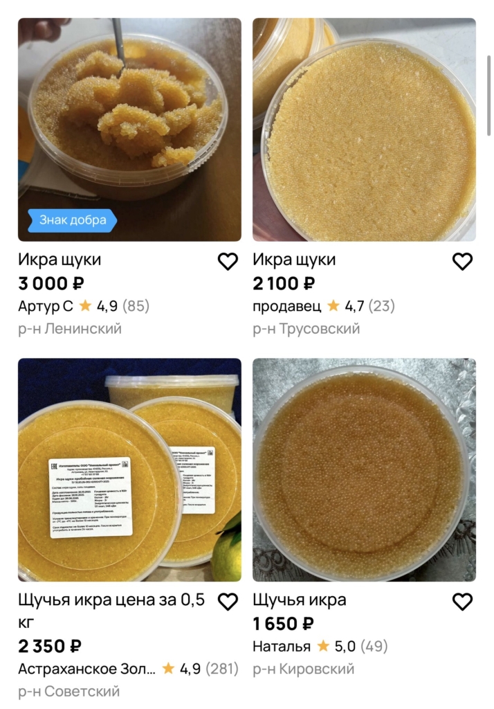 Вместе с тем, в чатах жилых домов астраханцы уже начали спрашивать о старте продаж щучьей икры. Кого-то интересует сырец, а кого-то уже готовая икра. Банка весом 250 грамм стоит 1500 рублей, 500 грамм – 3000 рублей, 1 килограмм – 6000 рублей. Предлагают астраханцам нередко именно свежую икру, заморожена она якобы не была. Достаточно странное предложение, таким «сказкам» лучше не верить. В связи с этим, у нас есть два вопроса: