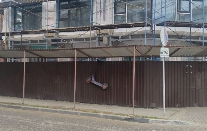 На перекрестке Энзелийской и Адмиралтейской сегодня прохожие с удивлением увидели… самокат, аккуратно «припаркованный» на заборе рядом с тротуаром. Да-да, не рядом, не возле, а именно на заборе. Фотографии опубликовали в телеграм-канале «Актуально Астрахань».