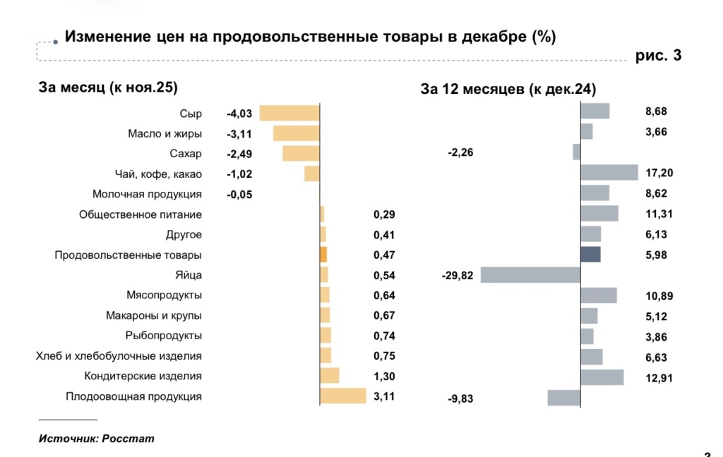 Продовольственные товары подорожали менее ощутимо. На прилавках преобладали огурцы, сладкий перец, выращенные в теплицах. Из-за затрат на отопление и свет плодоовощная продукция в декабре сезонно подорожала. Вырос спрос и на овощи открытого грунта – свеклу, картофель и морковь.