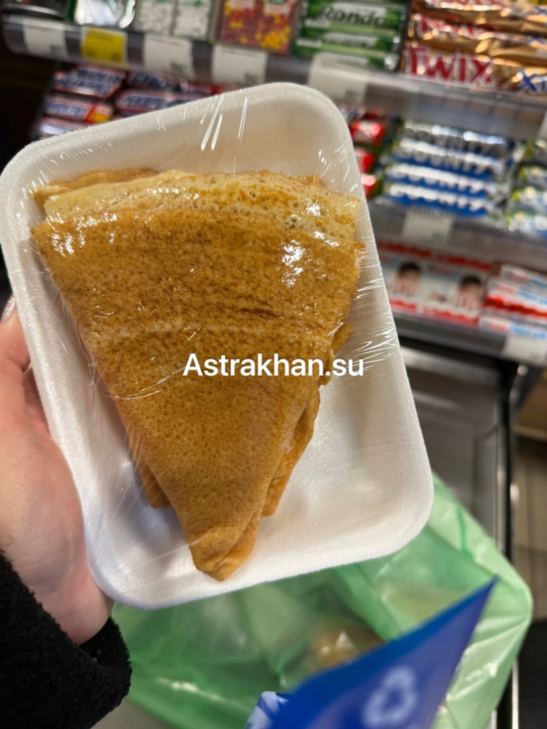 Местные супермаркеты предлагают астраханцам уже готовые блины. Одна штука, в среднем, стоит 40 рублей. Соответственно, стопка в 15 блинов обойдется в 600 рублей. Выглядят они симпатично, пахнут тоже неплохо. Корреспондент редакции нашего издания взял пару «красавчиков» на пробу. Верхний блин достаточно хорош собой, а вот в нижний продавцы свернули какие-то обрезки. Ситуация, прямо скажем, не очень то и праздничная.