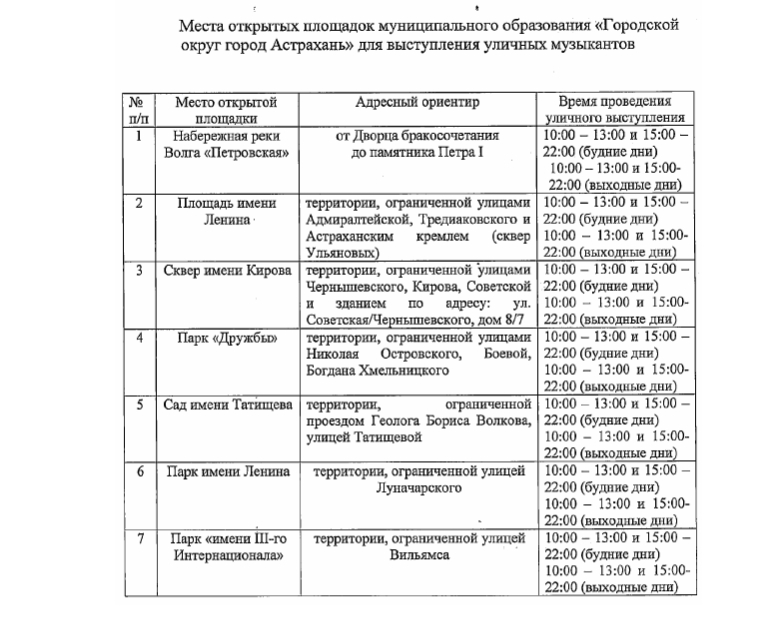Кстати, выступать в Астрахани можно только в определенных локациях и в установленные часы.