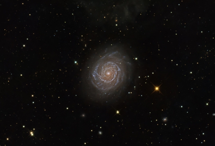 Данная спиральная структура отличается характерными плотно свернутыми рукавами, исходящими из яркой центральной зоны. Их голубой оттенок свидетельствует о процессе активного формирования новых звезд из межзвездных газов и пыли. Такие процессы приводят к появлению ярких молодых небесных тел, жизнь которых коротка, однако они оставляют значительный след, наполняя космос интенсивным светом и обеспечивая синтез тяжелых элементов при своем уничтожении посредством взрыва сверхновых.