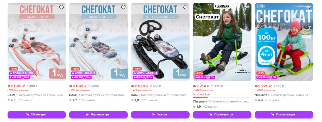 Современным родителям, чтобы не травмировать детскую психику куском линолеума, можно опять же воспользоваться приложением маркетплейса на своем смартфоне. Почему мы говорим про маркетплейсы, потому что на рынках нам также не удалось обнаружить в продаже ни ватрушек, ни ледянок. Здесь все довольно экономично, вот только опять придется подождать доставки пару дней: